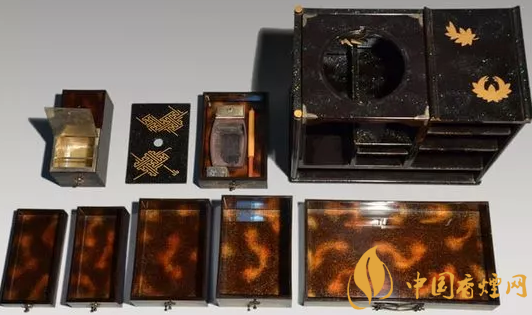 煙草盆主要有兩種形式——箱式和籃式?;@式煙草盆比較簡單,就是一個托盤與一個提手;而箱式的煙草盆往往注重裝飾比較華麗,除了頂部的托盤,下面還有很多小抽屜便于收納用具和器皿,看起來相當(dāng)講究。