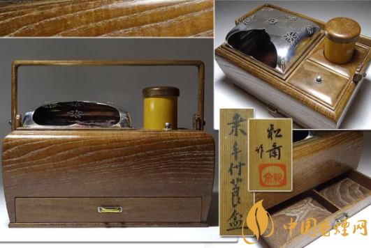 但是這種裝飾得華麗的煙草盆只是貴族的愛用品,真正深研茶道的茶人則更愛用樸素簡單的桐木、桑木制成的籃式煙草盆。即便是看似簡單的籃式,有一些為名家之作,選用昂貴的木材和非凡的工藝,隨沒有箱式那般華麗,但是往往也價格不菲。