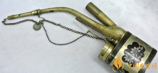 水煙袋的原理是青銅水煙壺,也叫水煙袋,用青銅板手工精細(xì)打成,壺里面裝大半壺的清水,煙桿里的煙霧經(jīng)過清水的過濾,再吸入口中。另外有一個“銀煙簽子”用來通去煙油子。