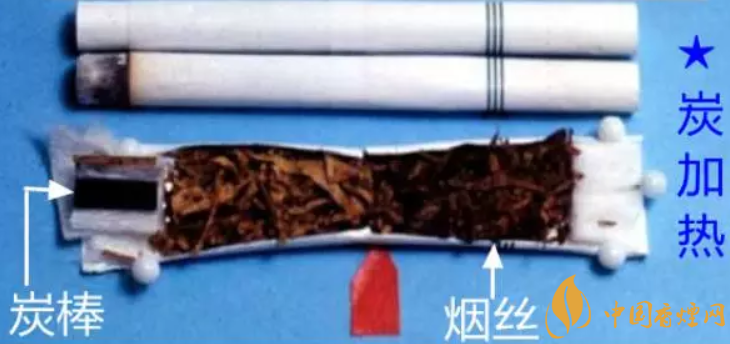 1、炭加熱卷煙,是在卷煙頭部加入一小段炭,點(diǎn)燃后產(chǎn)生熱量并傳遞給后部的煙草,進(jìn)而釋放氣體。